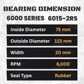 6015-2RS C3 Deep Groove Ball Bearing 75x115x20 Rubber Seal C3 Clearance