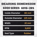 6016-2RS C3 Deep Groove Ball Bearing 80x125x22 Rubber Seal C3 Clearance