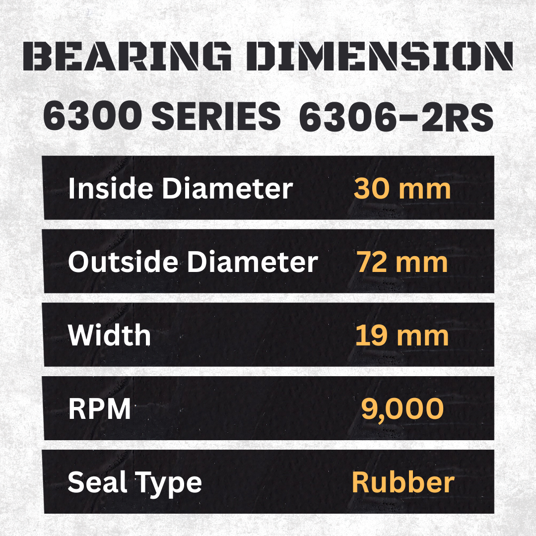 The Bear Max 6306-2RS offers high load capacity and sealed protection for demanding applications: